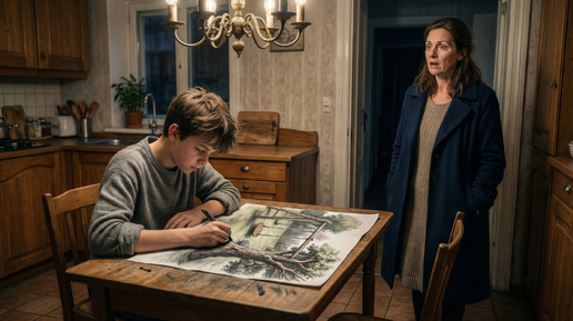 Ольга сбросила туфли на пороге и замерла, прислушиваясь. Сына не было слышно. Обычно в это время он уже делал уроки или смотрел мультики. Сердце, привыкшее жить в режиме тревоги, ёкнуло. — Андрей? — Я на кухне, мам. Она прошла на кухню и увидела его, склонившегося над столом. Перед ним лежал лист ватмана, а в руках он сжимал не карандаш, а кусочек угля, принесённый бог знает откуда. На бумаге проступали смелые, уверенные штрихи: наш двор, старые качели, фонарь, бросающий длинные тени. Работа была сырая, но в ней была энергия, жизнь...