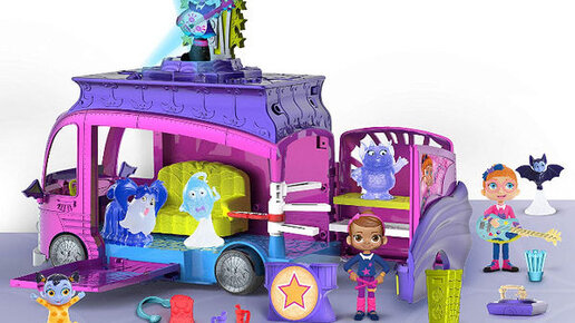 Rock ‘n Jam Touring Van, универсал Вампирины, приглашает всех поклонников шоу отправиться в потрясающий тур на гастроли! 🎶 Это будет вечеринка в полнолуние, давайте начнём, и можете поверить, это будет круто! 🎶 Фургон превращается в сцену, так что вы можете устроить концерт буквально где угодно! В шоу Disney Junior Вампирина Хантли — дружелюбная девушка-вампир, которая просто пытается вписаться в жизнь своих очень человеческих одноклассников, хотя она совсем не такая, как они. На этот раз,...