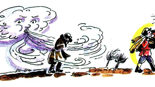 Однажды Солнце и сердитый северный Ветер затеяли спор о том, кто из них сильнее. Долго спорили они и, наконец, решились помериться силами над путешественником, который в это самое время ехал верхом по большой дороге. — Посмотри,— сказал Ветер,— как я налечу на него: мигом сорву с него плащ. Сказал,— и начал дуть, что было мочи. Но чем более старался Ветер, тем крепче закутывался путешественник в свой плащ: он ворчал на непогоду, но ехал всё дальше и дальше. Ветер сердился, свирепел, осыпал бедного...