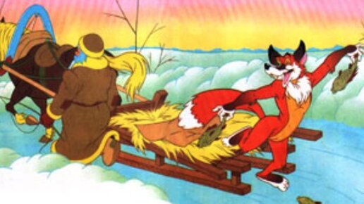 - О! Вот будет славный воротник жене на шубу! - взял Лису за хвост и швырнул её в сани. Закрыл рогожею, а сам пошёл подле лошади. Недолго лежала Лисонька, проделала в санях дыру и давай в неё рыбу выкидывать: рыбка за рыбкой, так и повыкидала всю...