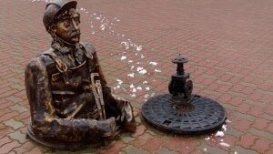 Здесь настолько суровые белорусы что вешают обложку паспорта как бигборд на стену дома латуневый сантехник вылезший из тратуарной плитки Старая и добрая Гаечка из диснеевского мультфильма 90-х. В Барановичах...
