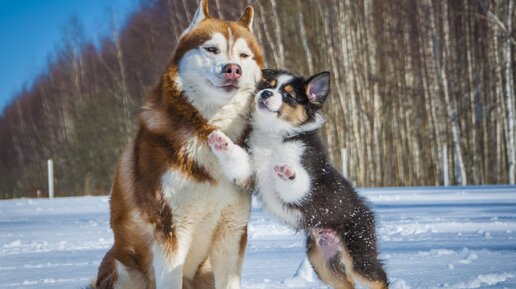 Было/стало: как вырос наш аусси Валенька и как изменились его отношения с нашими хаски Игорем, Натальей и Нирваной