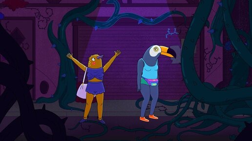 IMDb: 7.40 Непостоянная, но любимая мной рубрика – «Здравствуйте, мультсериал». И сегодня это «Тука и Берти». Тука – тукан (здесь все просто), а Берти, судя по моим скромным пятнадцатиминутным попыткам разобраться в орнитологии, – певчая воробьиная (хотя кому нужна такая конкретика). Тука – разгульная, шумная, яркая, а Берти – тихая, спокойная, уравновешенная. Эти две антропоморфные птицы - подруги, которые живут в одном доме, но в разных квартирах. Мультсериал является такой женской версией «Коня БоДжека», даром, что среди создателей есть совпадения...