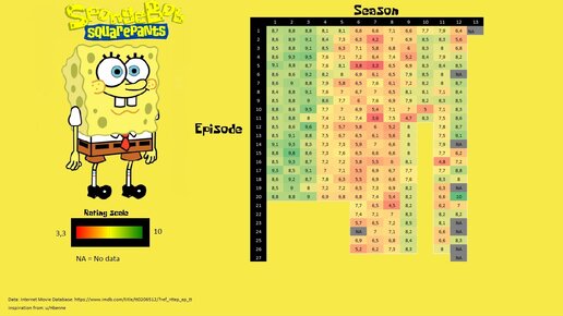 Шёл какой-то там день карантина... Пользователи Reddit создали таблицы с оценками из IMDb к каждому эпизоду своих любимых мультсериалов Футурама (1999 - 2013) Видимо, стоит пропустить 13 серию 6 сезона Симпсоны (1989 - ...) Всё-таки затягивать сериал на 30 лет было плохой идеей Рик и Морти (2013 - ...) Советую к просмотру каждого Губка Боб Квадратные Штаны (1999 - ...) Ещё один случай, когда спустя 10 лет можно...