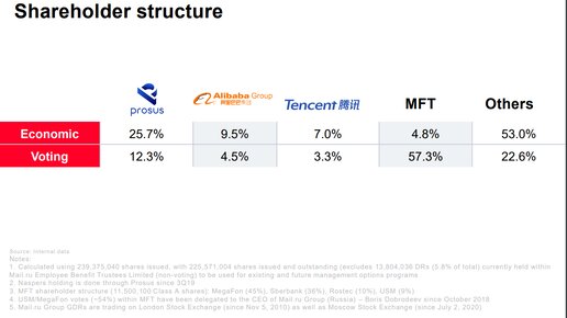Сегодня я написал довольно обстоятельный обзор по Mail.ru Group , в котором описал экосистему группы, затронул сотрудничество Сбера с Mail.ru через Сп, а также выразил мысль, что из трех экосистем со временем могут остаться только две, так как есть вероятность, что Сбер купит контроль над Mail.ru В связи с этим у меня возник вопрос о структуре акционерного капитала Mail.ru в текущем моменте. Идем простым стандартным путем: заходим на сайт компании во вкладку «Инвесторам», далее подвкладку «Акции...