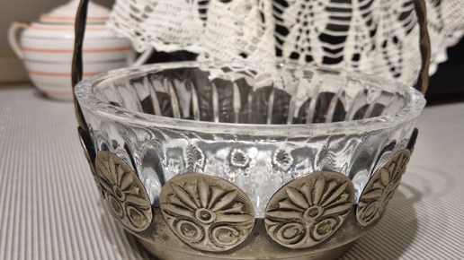 Дорогие друзья, продолжаем вспоминать нашу юность, глядя на предметы быта из СССР, а сегодня это будет посуда. Это конфетница, и довольно популярная в 70-80 годы(поправьте меня, если ошибаюсь). Выпуск таких ваз на подставке был довольно большой, чуть ли не в каждой семье они были. Мне она нравится, потому что удобно за ручку держать эту металлическую корзинку, да и сама вазочка легко вынимаается и моется. Такая же точно живёт в нашей семье и я до сих пор пользуюсь. Этой форме много лет, она активно использовалась при выпечке и в отличном состоянии, а вот и её цена...
