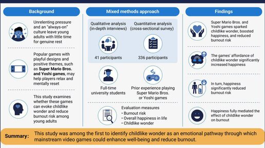 Каждый взрослый ощущает 'детское удивление' от простых классических игр, уровень счастья возрастает на 30%, а риск выгорания падает на 50%. Так что включаем уровни с грибами и черепахами и забываем о...