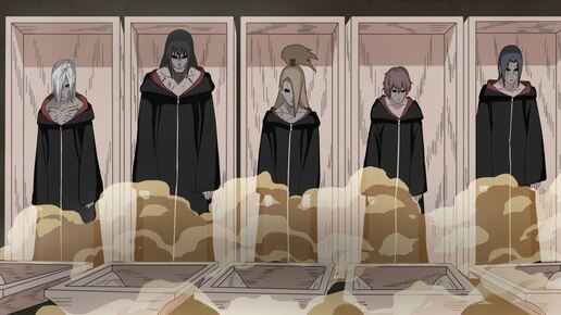 Одна из самых сильных техник в принципе, ибо призвать бессмертного шиноби с бесконечной чакрой. Для воскрешения нужно днк человека, которого нужно воскресить, и сосуд, т.е. живой человек. При этом душа воскрешаемого должна находиться в чистом мире, так что людей, чьи души в желудке у Шинигами, призвать не получится. Дня используется для активации специально заготовленного свитка, после чего активируется особая печать, в центре которой находится человек. После этого пыль и прах формируют вокруг жертвы облик воскрешаемого шиноби...