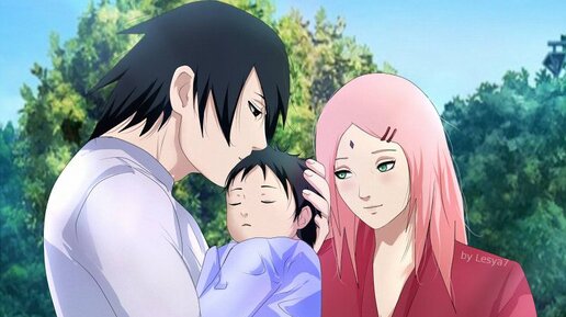 После того как Саске освобождается из тюрьмы Какаши становится Кагэ и Саске сообщает им что собирается отправиться в путешествие и после того как он отказывает Сакуре в том чтоб она пошла с ним история в аниме прерывается и многие так и не узнаю что происходит дальше . Eдинственный способ узнать о судьбе каждого героя о которых не говорится в аниме это чтение романов по их мотивам , как раз там говорится об отношениях Саске и Сакуры . Из романов можно понять что после долгого путешествия Саске...
