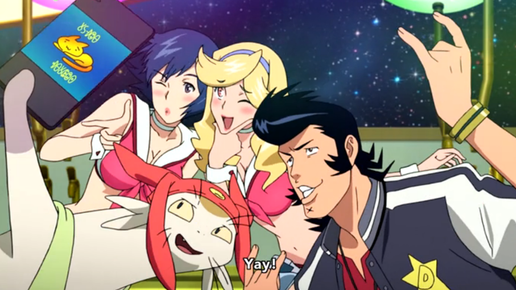 Комедийная аниме фантастика про троицу друзей, которые работают ради посещения бара с красивыми девушками