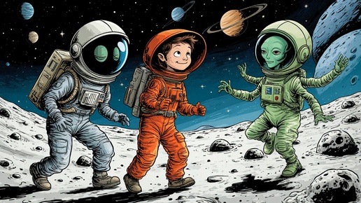 Жил-был мальчик по имени Незнайка — маленький человечек с большими мечтами. Однажды вечером, сидя возле своего домика в Цветочном городе, он смотрел на звезды и думал: “Интересно, а что же там?” Его сердце трепетало от желания увидеть далекие планеты своими глазами...