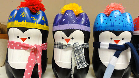 Всеми любимые пингвины своими руками , их можно подарить друзьям и украсить свой дом, этими мелкими проказниками . Для этого нам нужно всего лишь это : Вымойте бутылки снаружи и внутри. Бутылки должны быть полностью сухими. Отрежьте первую бутылку, разделяя основание, как показано на картинке. Разрежьте вторую бутылку пополам. Мы будем использовать только эти две части бутылок. Закрепите одну часть в другую. Большая часть фиксируется в мелкую часть, более или менее на 0,5-1 сантиметр. Теперь склейте две части между собой...