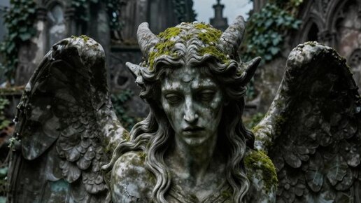 ! 🏰 Разберём, как создать мистический готический портрет с идеальной детализацией материалов и атмосферного освещения, а затем оживим его в t.me/AAGVideoBot 📝 Оптимизированный промт: A weathered, ancient stone statue of a female demon, crouching with intense, sorrowful expression, her long wavy hair cascading over her shoulders, two curved horns protruding from her head, pointed ears, and large, spread wings with visible cracks and moss growth, her hands gripping a stone pedestal, set against...