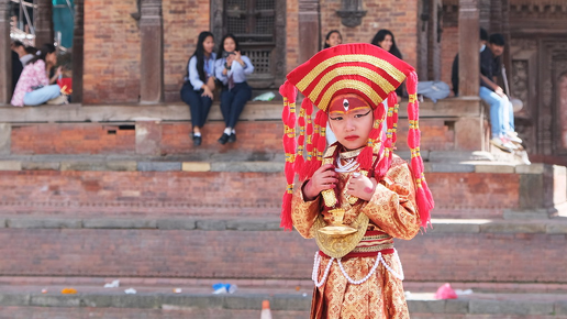 По площади Дурбар гуляли десятки девочек, наряженных под живую богиню Кумари.