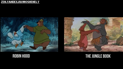 Создание мультфильма очень дорогостоящий процесс, а пару нет назад этот процесс стоил еще дороже, так как не было таких технологий, которые есть сейчас. Чтобы сэкономить деньги и время, компании шли на различные ухищрения, которые остались не замечены простым зрителем. Сегодня я покажу 6 примеров того, как Дисней использовали одни и те же сцены в некоторых своих мультфильмах. 1. «Белоснежка и семь гномов» и «Робин Гуд» В данных мультфильмах были замечены похожие сцены, только с другими персонажами...