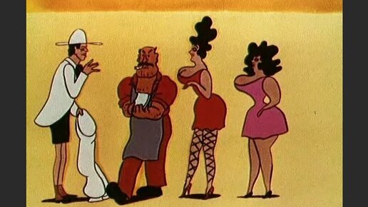 Помните этот мультфильм? Он был снят в 1978 году режиссером Ефимом Гамбургом как пародия на модные в то время зарубежные детективные ленты. Помню, как я уселась перед экраном в предвкушении интересненького и... Почти ничего не поняла. Мультфильм-то был для взрослых! Кстати, именно с этим мультфильмом я тогда и сделала открытие: оказывается, мультфильм это не детский рисованный фильм, а вид искусства. ))) И что бывают мультики для взрослых. Простая рисовка с малым количеством цветов, незатейливый сюжет, клишированные персонажи с лицами известных актеров - вот составляющие этого мультфильма...