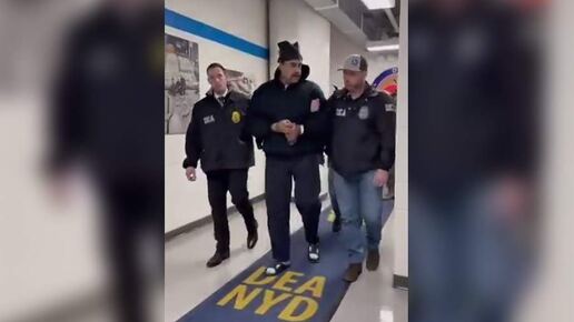 Президент Венесуэлы Николас Мадуро в наручниках пожелал всем спокойной ночи и поздравил с Новым годом, пока его вели по коридору штаб-квартиры Управления по борьбе с наркотиками (DEA) в Нью-Йорке. О соответствующем видео 3 января сообщила газета New York Post (NYP). «Спокойной ночи, счастливого Нового года», — приводит слова Мадуро издание. По пути Мадуро сопровождают федеральные агенты. На президенте черные спортивные штаны и черная шапка. Его сковали наручниками, а в руках он держит бутылку воды, уточнила газета...