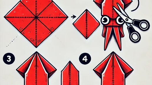 📌 [Изображение 1: Готовая бумажная фигурка кальмара] В сериале участники играли с бумажными доками — ddakji...