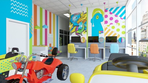 Существуют интересные дизайны оформления интерьера парикмахерских. Их мы будем часто рассматривать в нашем блоге. Сегодня расскажем о дизайне интерьера парикмахерских для детей. Смотрите фото: Это не компьютерный клуб и не игровая площадка- это самая настоящая детская парикмахерская и создана она брендом Красаффчики! Можно видеть что все тут настолько креативно и прекрасно продуманно, именно для работы с детьми. Мониторы где можно смотреть кино и мультфильмы, сиденья в виде машинок , для самых маленьких...