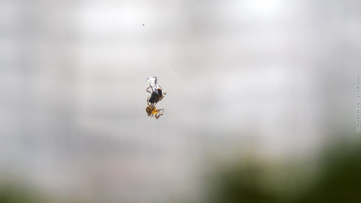 ... за окном на паутине... Показывал я уже фотки с ними, да и небольшое видео... с этим паучком и его жертвой ((-: она же пленница, она же обед, ужин, и возможно завтрак :-)) Видео я немного обновил, накинул фоновую музыку, да и перезалил в моё сообщество в вк «Птички и другие белочки Николая Патрина»: Снято в Геленджике,...