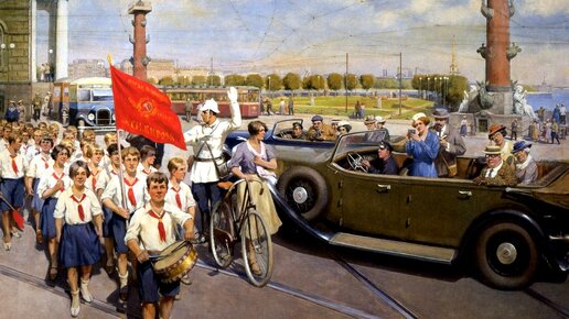 Когда Сергей Сергеевич Прокофьев начал писать своего "Петю и волка" (в апреле 1936 года), он имел о советских пионерах чисто теоретическое представление. Советский пионер с французским уклоном В это время он только-только окончательно перебрался в СССР из Франции после 18-летней эмиграции и, ожидая получения квартиры, жил в гостинице для иностранцев "Националь". Возможно, он мог наблюдать со стороны пионерские отряды на улицах Москвы, подобно этим интуристам на картине Ивана Владимирова. Кстати,...