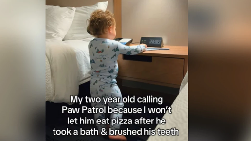 Видео с забавным моментом мама выложила в соцсети. Аманда Хейес-Реуарк сняла на видео забавный момент: ее двухлетний сын Бодхи решил позвонить в «Щенячий патруль», когда мама запретила ему съесть еще пиццы после ванны. Ролик она выложила в TikTok, пишет People. Находясь в гостиничном номере, малыш берет телефон, чтобы сообщить властям о произошедшем. «Мама не разрешает мне пиццу», — говорит Бодхи в трубку, стоя в пижаме. Когда Аманда спросила, с кем он разговаривает, мальчик объяснил, что позвонил в «Щенячий патруль»...