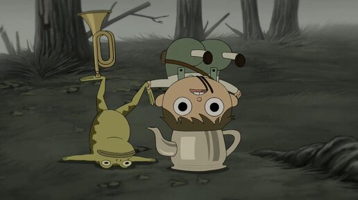Сегодня я бы хотела разобрать визуальное повествование мини-сериала «По ту сторону изгороди» от Cartoon Network, а именно его финальный эпизод. Последний 10-ый эпизод разделен на три акта и у каждого из них есть свой цвет. Первый акт — белый цвет, второй акт — черный цвет и преимущественно темные и мрачные оттенки, третий акт — «цветной», насыщен разными яркими цветами (относительно всего тона шоу). В первом акте все белое, идет снег. Эта часть посвящена взаимодействию Зверя и Грега. Зверь пытается сломить дух мальчика, но у него это не получается...