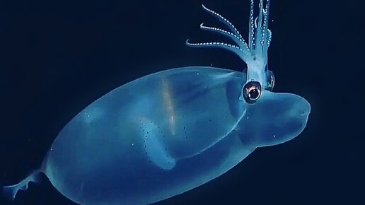 Если бы герои мультфильмов могли оживать, то это существо было бы первым кандидатом, в котором бы я заподозрил перенесённого мультперсонажа в реальный мир. Да сами посмотрите. Вы, наверняка, видели "Котопса". Тогда почему бы и не быть кальмару-поросёнку? То, что вы можете принять за улыбку и прочие оранжевые пятна, на самом деле являются специфическими органами хроматофорами – позволяющими моллюску менять свою расцветку. Но в состоянии покоя, если смотреть на нашего героя спереди, то можно принять его за родного брата Нюши из Смешариков...