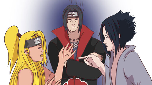 Всем привет! Сегодня хочу поделиться с вами ещё одним моим фан-комиксом по Наруто. На этот раз те, кто недолюбливают друг друга сошлись в ожесточённом споре. Итачи, что же ты сделаешь, что бы угомонить своего младшего брата и неуравновешенного искусствоведа? Вывод: Итачи всегда знал технику волшебного "тыка", это запретное ниндзюцу передавалось из поколение в поколение в их клане, от отца к старшему сыну...