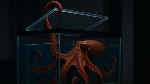 Истории побегов осьминогов из аквариумов — это не байки, а хорошо задокументированный феномен. Настолько часто они это делают, что биологи шутят: «Осьминог — это не животное, а жидкость с интеллектом.» Вот самое интересное и правдивое про их побеги — с примерами, которые вошли в историю. 🐙 Почему осьминоги постоянно сбегают из аквариумов? 1. Они невероятно умны Осьминог понимает: где вход, где слабое место, как открыть крышку, как добраться до соседнего аквариума, как выключить лампу (да-да), как открутить клапан подачи воды...