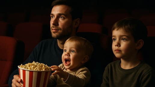 Привет, это Папа. Кино. Какое прекрасное слово для взрослого человека. Полумрак, огромное кресло, гигантский экран, ведро попкорна... два часа тишины и погружения в другую реальность. А теперь добавим в эту картину двух детей: шестилетнего "почемучку" и двухлетнего "урагана". Идиллия рушится. Поход в кино с семьей — это спецоперация, которая 90% времени обречена на провал. Мы пробовали взять Младшего (2,5 года) на "Короля Льва". Это закончилось оглушительным ревом на сцене гибели Муфасы и поспешной эвакуацией из зала через 15 минут...
