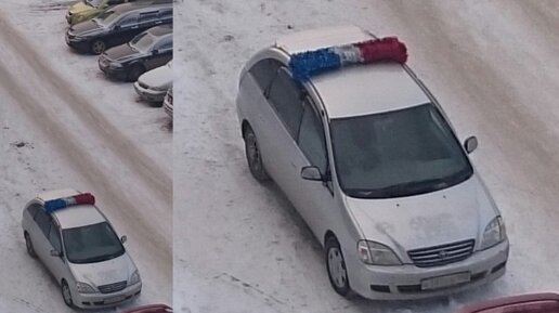 Новый год уже совсем близко многие дома уже поставили ёлочки, на окна повесили красивую иллюминацию, завесили шторы красивой мишурой. В каждом магазине стараются придать атмосферу праздника. На улице коммунальщики вешают на фонарные столбы новогодние световые элементы по типу снежинок. Смотря на всё это некоторые особые водители которые хотят выделится из толпы и привлечь максимальное внимание к своему автомобилю устанавливают на крышу машину багажник и на поперечную сойку пересекающую крышу наматывают новогоднюю мишуру, такого же цвета как проблесковые маячки на автомобилях полицейских...
