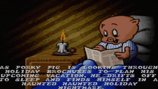 Время последней битвы. Длинный путь подошёл к концу. Сегодня мы точно узнаем, где лучше игры по мультикам Looney Tunes. Sega Mega Drive и Super Nintendo Entertainment System. Porky Pig's Haunted Holiday Super Nintendo Entertainment System (1995) Разработчик – Phoenix Interactive Entertainment Даже свиньи мечтают об отпуске. Только с везением у поросёнка Порки всё очень плохо. Множество кошмарных тварей лезут в сон хрюнделя. Сможет ли Порки избежать участи превратиться в холодец? Porky Pig's Haunted Holiday вызвала у меня большое недоумение...