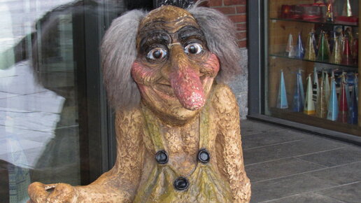 В Норвегии полно троллей. Местные жители просто жить без них не могут. Они всюду. Фигуры троллей можно встретить в парках, в кафе, на заправках и на детских площадках, их продают во всех сувенирных магазинах. Стоило нам пересечь границу между Швецией и Норвегией, как тут же из-за леса показался огромный тролль, возвышающийся над деревьями: Тролль – это сказочное человекообразное существо с длинным крючковатым носом и лохматой шевелюрой, у которого по четыре пальца на каждой ноге и руке. Так его сейчас изображают...