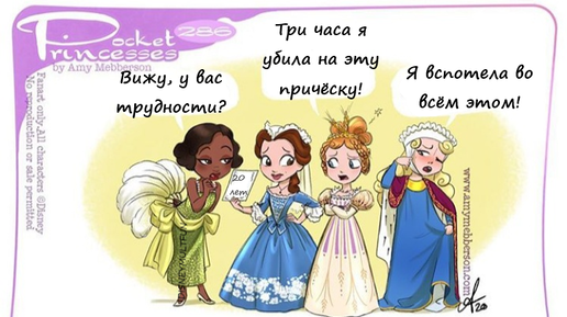 Приветствуем Вас на канале DisneyMultFun! Серия "Карманные принцессы" полюбилась многим, Эми Мебберсон - наш "новый Дисней" (по крайней мере, в комиксах). Но, мало того, что английский язык, на котором говорит автор, изобилует непереводимой игрой слов; так ещё она постоянно вклинивает в жизнь героинь мультикультурные эпизоды. И получается, что простенький с виду комикс требует пояснительную бригаду! Итак, о чём сегодня шутит Эми? Принцессы Диснея собираются праздновать 20-летие Бэлль и странно принарядились! Только Тиана среди них выглядит обычно...