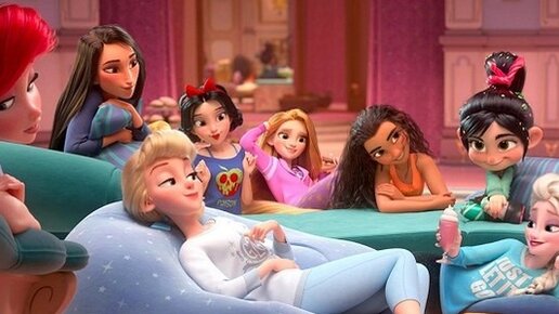 Ральф — хороший пример текущего курса компании Дисней. Как он отличается от того курса, что был еще лет тридцать назад? Старый Дисней представлен здесь принцессами, которые все как одна вздыхают о том, как все их сюжеты свелись к мужчине, после которого якобы наступило "долго и счастливо". И правда, классический счастливый конец в сказках Диснея — свадьба, любовь, закат. В мультфильмах не про принцесс финал может обходиться без любви и свадьбы, но сюжет всегда шел по пути проблема-путешествие-решение...
