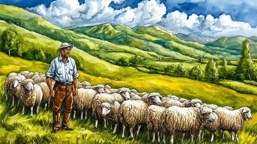 В одном живописном селе, утопающем в зелени, жил добрый пастух по имени Андрей. Он был известен среди местных жителей своей заботой о стаде овец, которые были для него не просто животными, а настоящими друзьями. Каждый день он выводил их на обширные пастбища, где овцы свободно гуляли, наслаждаясь свежей травой и теплым солнцем. Однажды, когда Андрей собирал овец, он заметил, что одна из них пропала. Это была его любимая овца по имени Милка, отличавшаяся своим светлым шерстью и игривым характером...