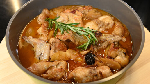 Ингредиенты: • Кролик — 1 шт. • Красный лук — 2 шт. • Яблоки — 2 шт. • Чернослив — 6 шт. • Оливковое масло — 1 ст. л. • Сливочное масло — 25 г • Белое сухое вино — 50 мл • Сладкая горчица — 2 ст. л. • Мед — 1 ст. л. • Бальзамический уксус — 1 ст. л. • Красный жгучий перец — по вкусу • Сладкая паприка — 1 ч. л. • Тростниковый сахар — 1 ст. л. • Розмарин — 1 веточка • Вода — 100 мл • Соль — по вкусу Способ приготовления: 1. Тушку кролика разделайте на порционные части, удалите лишний жир и пленку...