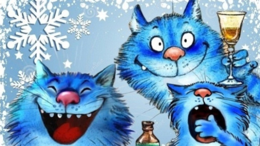 Новогодний весёлый разгуляй синих котов в живописи художницы Рины Зенюк.
