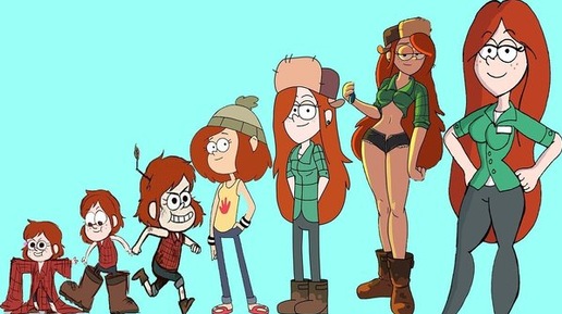 Radius сделал очень интересно видео,в котором показал как менялись персонажи гравити фолза. Сначала Венди показывают как озорного ребенка,в рубашке.Которая намного больше её саму. Потом мы видим Венди в сапожках,и тут она уже повзрослее. Мне,очень понравилась задумка.Я любитель Гравити фолза,и думаю что автор все правильно нарисовал...
