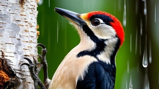 Дятел – птица непростая, Но, красивая такая! Целый день в лесу стучит, Очень славно веселит. Встал он утром спозаранку, Отбивает уж "морзянку". Добывает себе корм, нипочём ему и шторм...