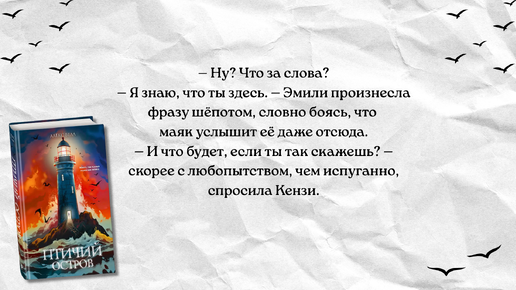 Именно Кензи предложила поиграть в «Правду или действие». На Птичьем острове всё равно делать было нечего. Ни кинотеатров, ни кафе, даже телефоны не ловили. Просто груда зазубренных чёрных камней посреди холодного безжалостного моря. Ничего, кроме птиц, нескольких каменных охотничьих домиков и маяка. Не подходите к маяку… Трое подростков получили совершенно одинаковые указания от родителей, когда прибыли на Птичий остров, чтобы поохотиться нао́луш. Взрослые настаивали, что это не суеверие, а просто рациональность...