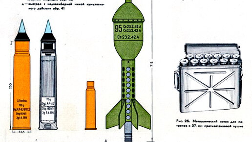 Основные характеристики надкалиберного боеприпаса обр. 41 3,7 cm Stiek.-Gr. 41 следующие: масса 9,15 кг; длина — 712,0 мм; масса кумулятивной боевой части — 2,28 кг. Взрыватели головной и донный. Метательный заряд специальный весом 210 г нитроглицеринового трубчатого пороха (Ngl.Man.N.P.-12,5-(4.4.1), масса воспламенителя из пироксилинового пористого пороха марки Nz.Man.N.P. (1,5.1,5) — 4 г. Оба заряда были собраны в обычной гильзе от орудия. При заряжании стержень мины вводился в канал ствола с дульной части...
