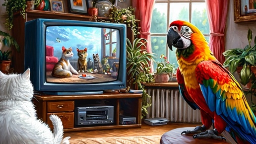 Продолжение. Предыдущие рассказы смотрите ЗДЕСЬ Прррривет! Сегодня у нас культурная программа. Хозяева включили мультики! Сидят, улыбаются, а я, Кекс Великолепный, тут же подключился. Ну, а что? Я же интеллектуал. И вдруг — о чудо! — показывают какого-то попугая. Рябого, крикливого. В тельняшке. И в шляпе. Имя — Кеша. Ну, Кеша и Кеша, а я-то думал, хоть «Великолепный» в титрах напишут. Ан нет. Зато он орет: «Таити, Таити! Нас и тут неплохо кормят!» Ну, да, конечно. Кормят. Ага, семечками. И зернышками...