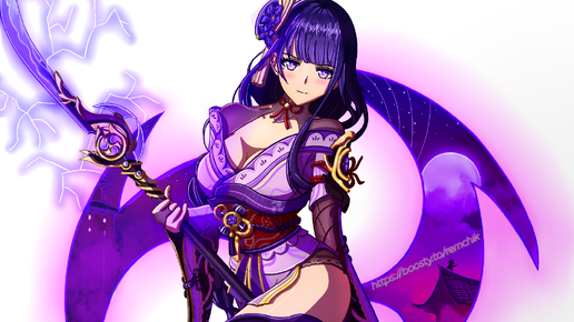 Фан арт по персонажу райден сегун из игры геншин импакт.