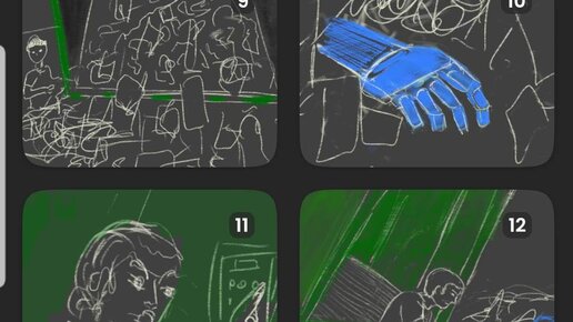 С чего я собираюсь начать создание мультфильма? Учитывая, что я пока не умею делать анимацию и это направление еще только предстоит изучить, было решено пойти самым очевидным путем - ежедневно понемногу делать то, что у меня получается прямо сейчас. Прямо сейчас я умею немного рисовать. Значит, буду рисовать раскадровку. Раскадровка - это последовательность статичных кадров будущего мульта, что-то типа комикса...