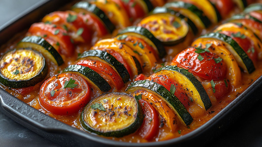 Каждый кусочек рататуя — это лёгкое прикосновение лета: нежные овощи тают во рту, переплетаясь сладостью, пряностью и свежестью. Он прост и изыскан одновременно — в нём нет спешки, только терпение, тепло и любовь к вкусу. Для соуса: Для запекания: 1. Подготовка овощей: 💡Совет: если баклажаны горчат, посыпьте их солью и оставьте на 10–15 минут, затем промойте и обсушите...