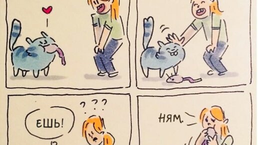 Художница из Дании рисует комиксы о проделках своих котиков