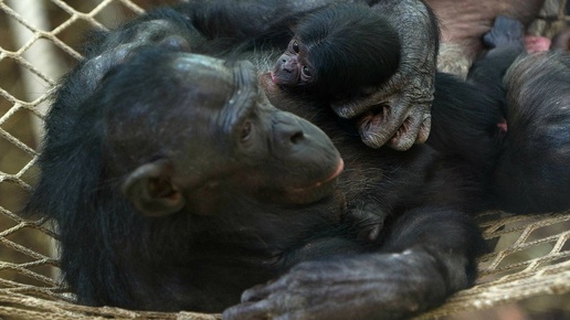 Детеныш редчайшего вида обезьян бонобо родился в зоопарке