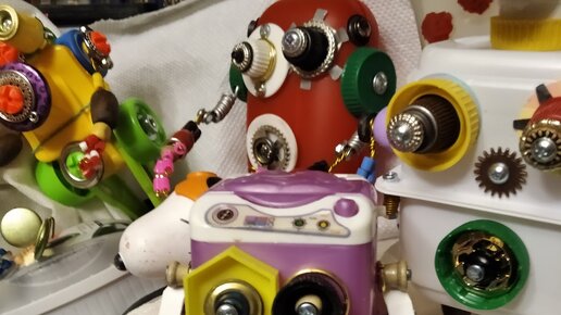 Мы действительно сможем превратить стиральную машинку в симпатичного робота. Правда машинка эта игрушечная. Кто хочет может по этому принципу превратить в андроида и домашнюю стиральную машинку. Но детей предупреждаю, маму такой фокус не слишком обрадует. А вот игрушечною стиральную машинку китайского производства стоимость которой 50 центов превратить в робота- шкатулку для хранения разной мелочи очень даже нужно. У игрушечной стиральной машинки очень удобные верхние панели, которые легко снимаются, что обеспечивает нам доступ к внутренностям аппарата при прикручивании всей оснастки робота...